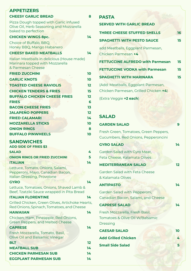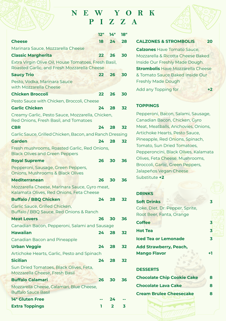 When it comes to delicious food that satisfies every craving, the Urban Ny Pizza & Grill Menu truly has it all. From piping hot pizzas with perfectly crispy crusts to savory grilled favorites, this menu is packed with mouthwatering choices. Whether you're in the mood for a classic margherita pizza, a hearty burger, or a fresh salad, there's something for everyone to enjoy. Every dish is prepared with the finest ingredients, ensuring each bite is full of flavor. Whether you're dining in or grabbing a quick bite to go, the diverse options on the menu make it a perfect spot for any occasion. Indulge in the tastes of comfort and quality at Urban Ny Pizza & Grill, where every meal feels like a special treat.
